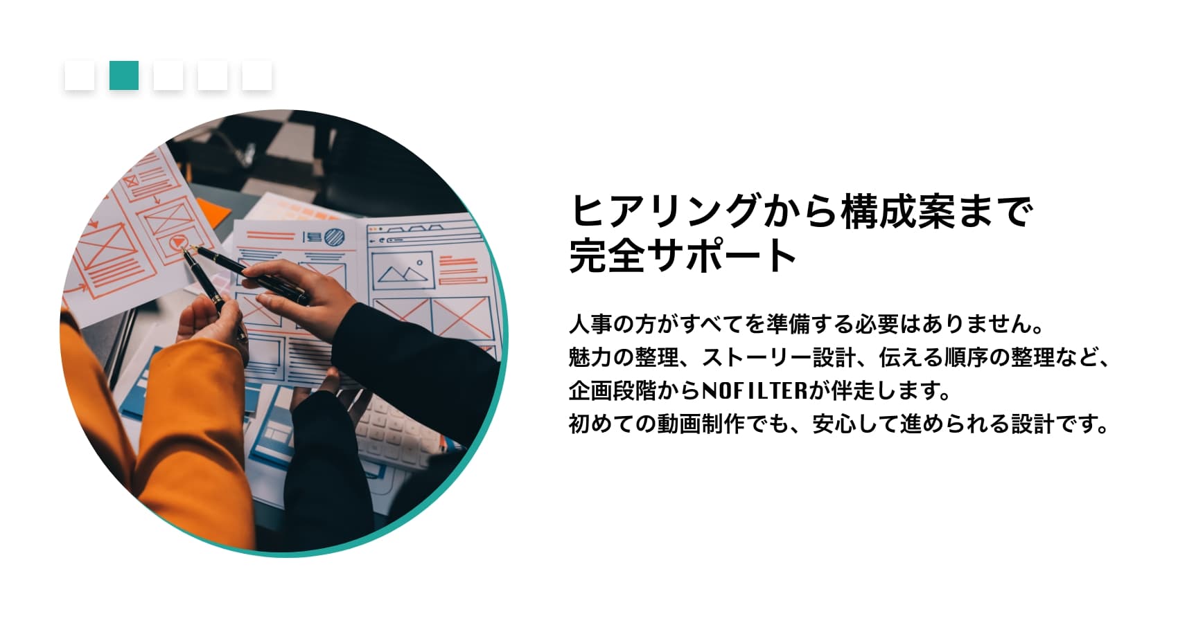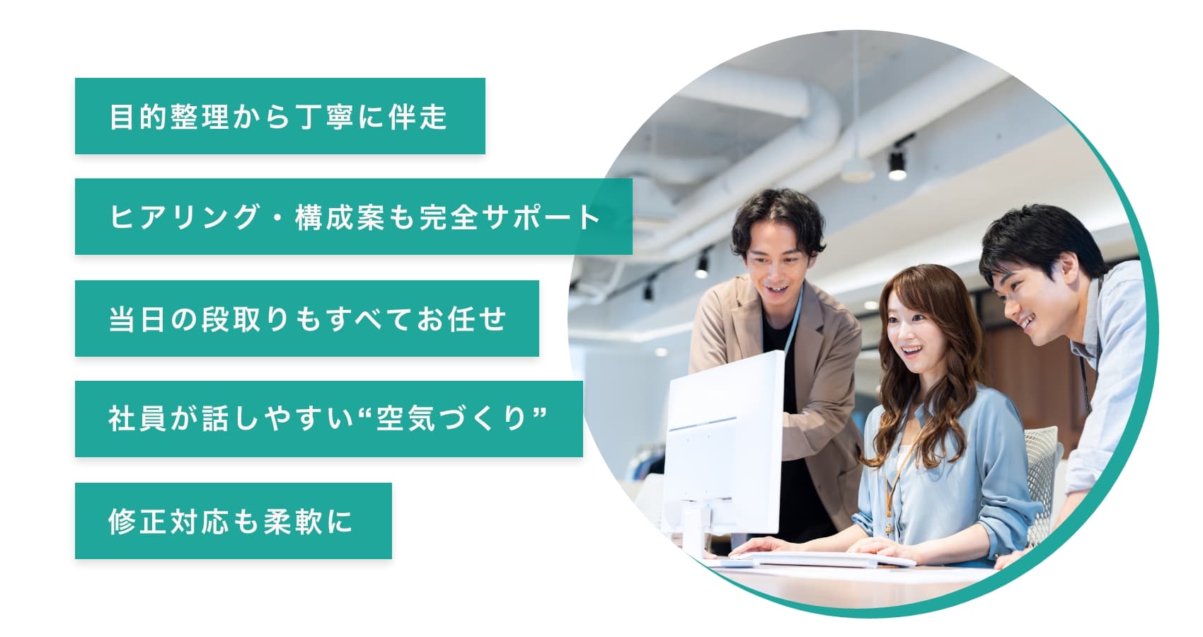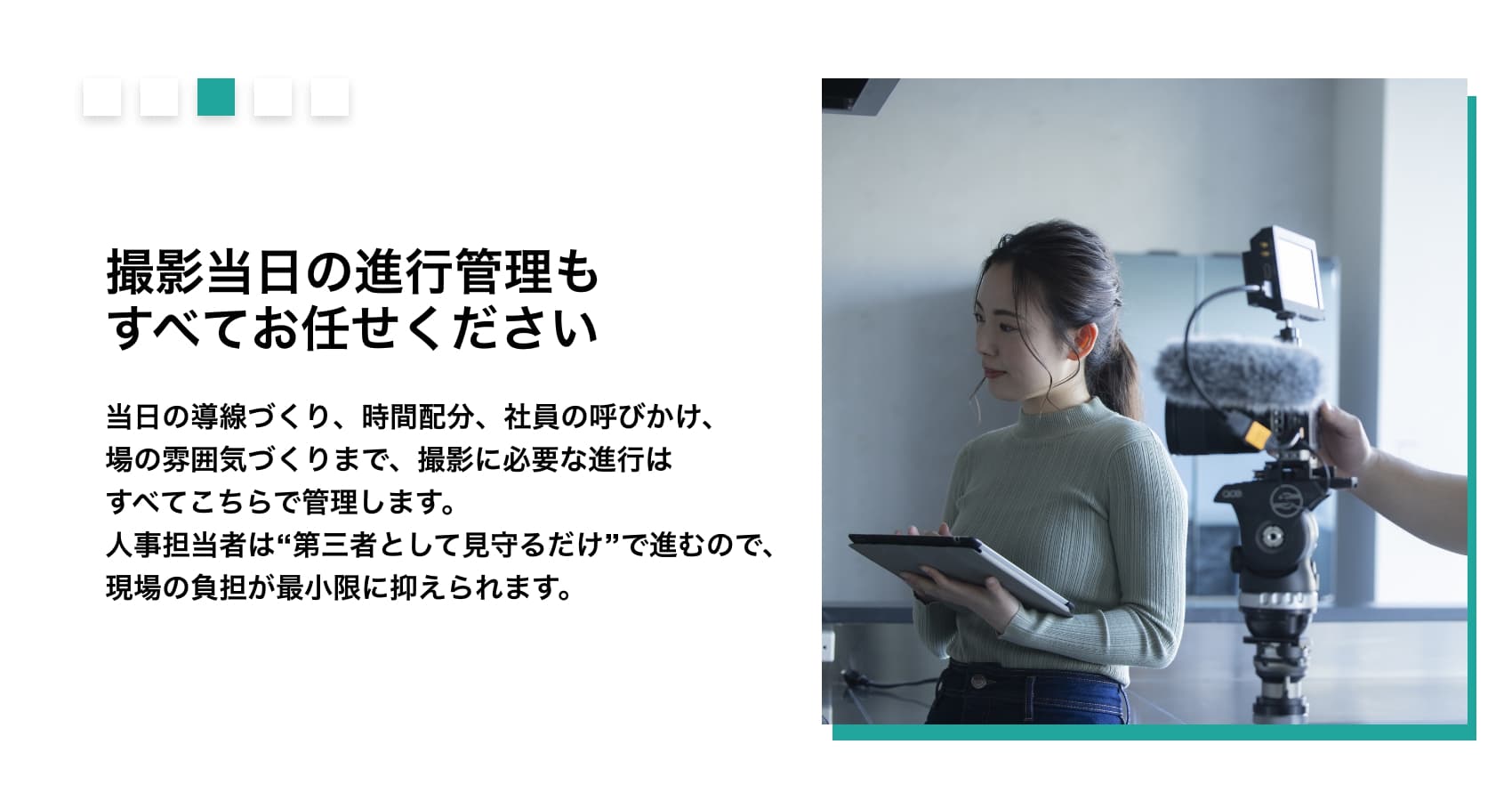 人事担当者の負担を最小限にする“寄り添う制作プロセス”をご提供しています。